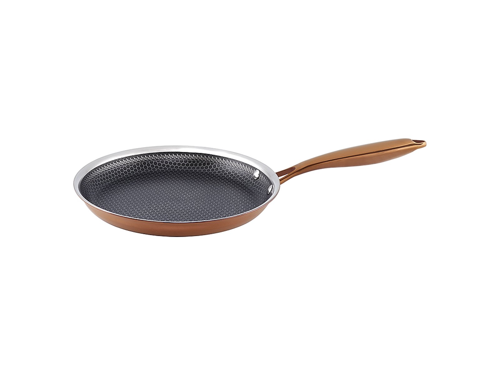 Den 3-lagers multi-ply konstruktionen kombinerar rostfritt stål på både in- och utsidan med en aluminiumkärna som säkerställer snabb och jämn värmefördelning. Detta eliminerar irriterande "kalla zoner" och ger en enhetlig stekyta, så att dina pannkakor blir jämnt gyllene varje gång. Det värmeisolerande handtaget förblir svalt under matlagning, vilket ger dig full kontroll och säkerhet, även vid högre temperaturer.