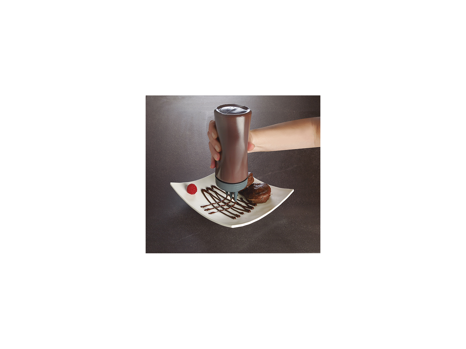 Med klemmeflaskan får du samma precisa resultat varje gång. Den ergonomiska designen ger dig full kontroll över mängden, så du undviker spill och kan dosera exakt. Detta säkerställer inte bara ett estetiskt tilltalande resultat, utan också en enhetlig smakupplevelse för dina gäster. Den transparenta flaskan gör det dessutom enkelt att se innehållet och mängden.