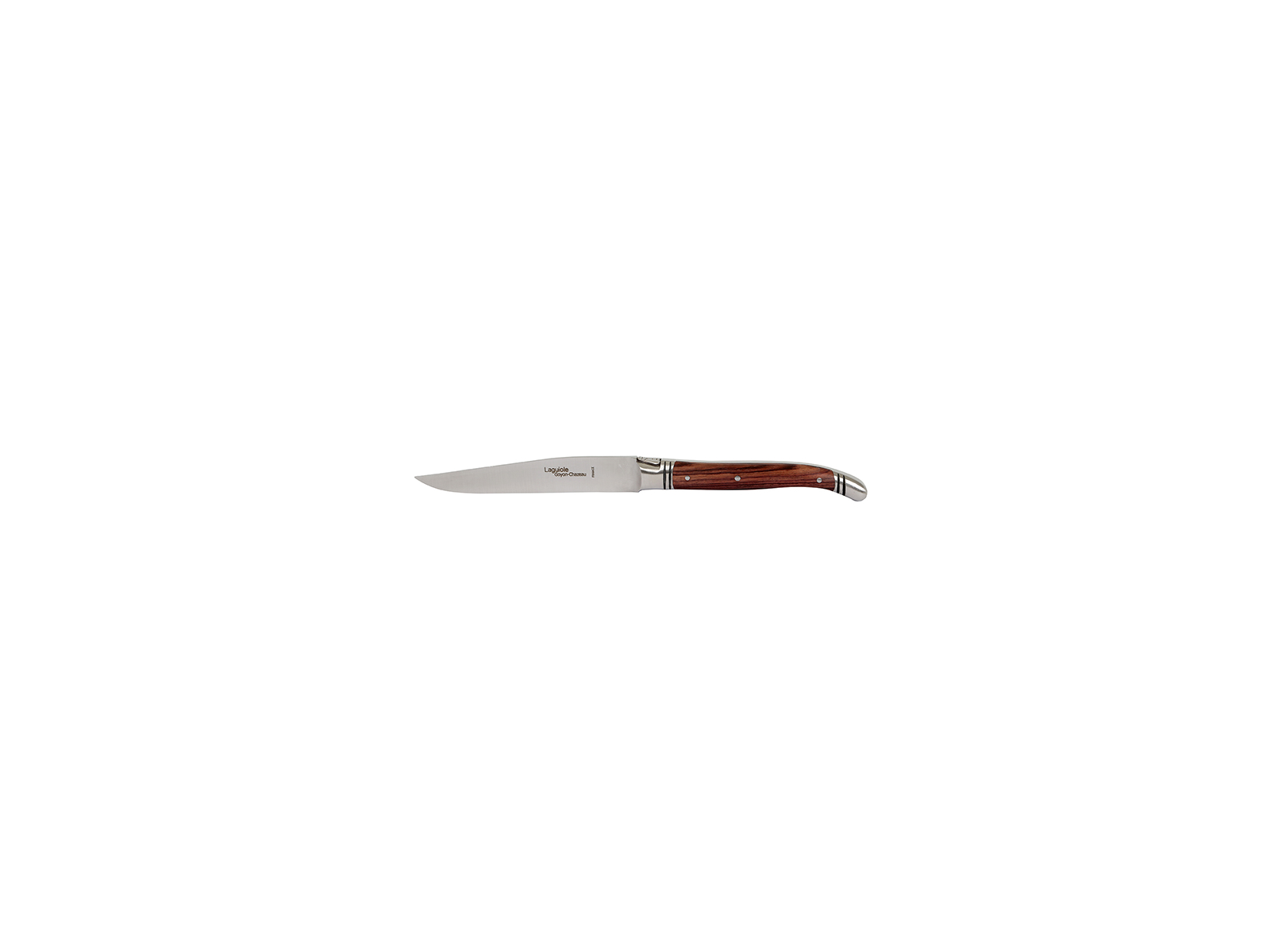 Laguiole-namnet har djupa rötter i fransk knivtradition från 1800-talet. Denna steakkniv är tillverkad med omsorg i regionen Thiers, där generationers kunskap om knivtillverkning har förts vidare. Det rostfria stålbladet säkerställer hållbarhet och skärpa, medan handtaget i kongeträ tillför naturlig skönhet och taktil komfort. Kombinationen gör kniven till både ett funktionellt verktyg och ett vackert inslag på bordet.