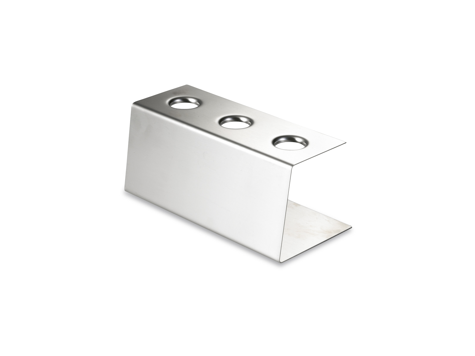 Denna stilrena glasshållare från Stöckel är tillverkad i hållbart rostfritt stål och är designad för att presentera upp till tre våfflor samtidigt. Med sina genomtänkta mått på 200 mm i längd, 95 mm i bredd och 85 mm i höjd säkerställer glasshållaren att dina våfflor står stabilt och inbjudande. De tre hålen med en diameter på 26 mm håller våfflorna säkert på plats.