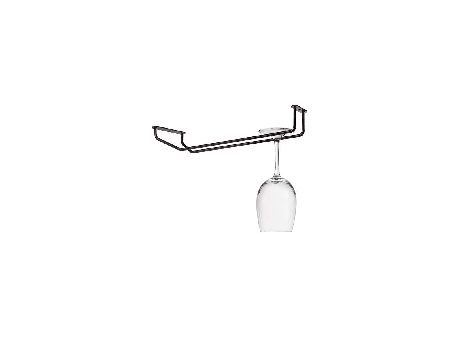 Glashängaren kan monteras under hyllor eller i taket med vanliga skruvar (ingår ej).