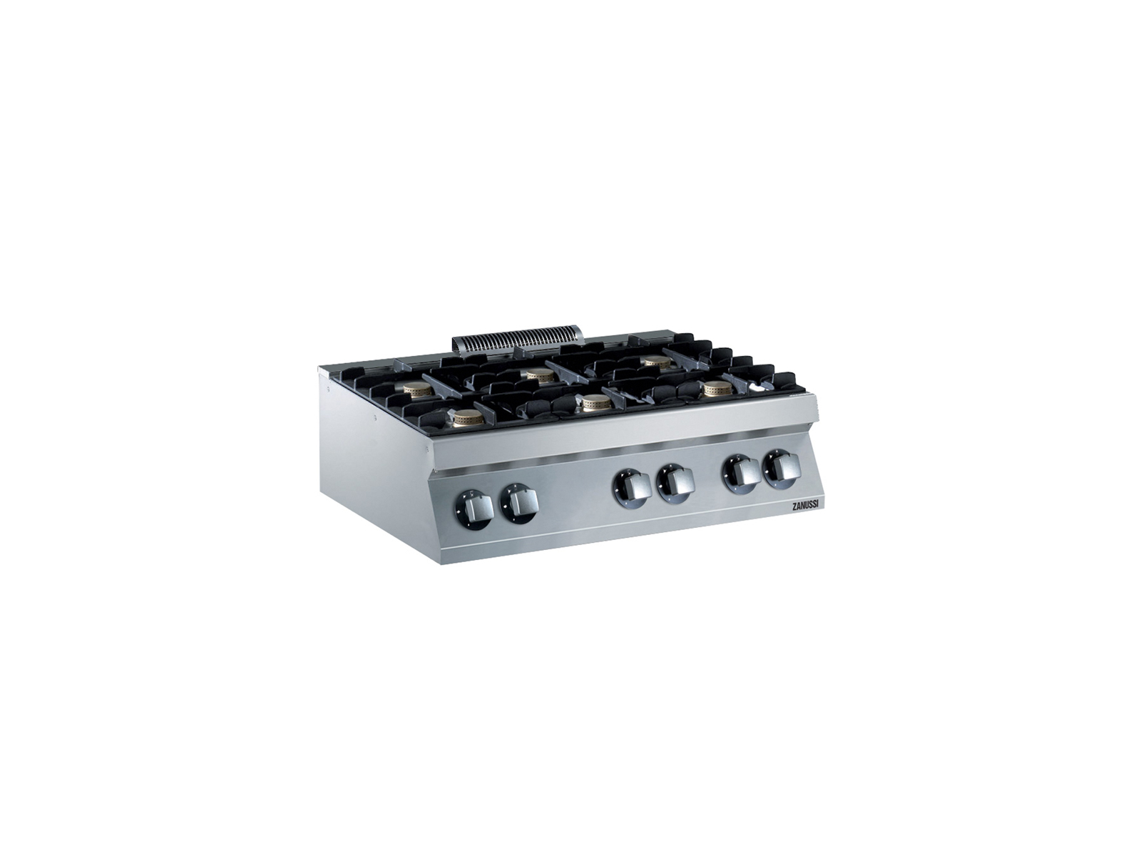 Hällens centralbrännare är utrustad med optimerad förbränning och flammebrottsanordning som automatiskt stänger av gasförsörjningen om flamman skulle slockna. Det skyddade pilotljuset och de lättåtkomliga styrelementen som är placerade på framsidan gör den dagliga användningen och underhållet enkelt. De räta sidokanterna möjliggör installation i linje med andra enheter, vilket eliminerar mellanrum där smuts kan samlas.