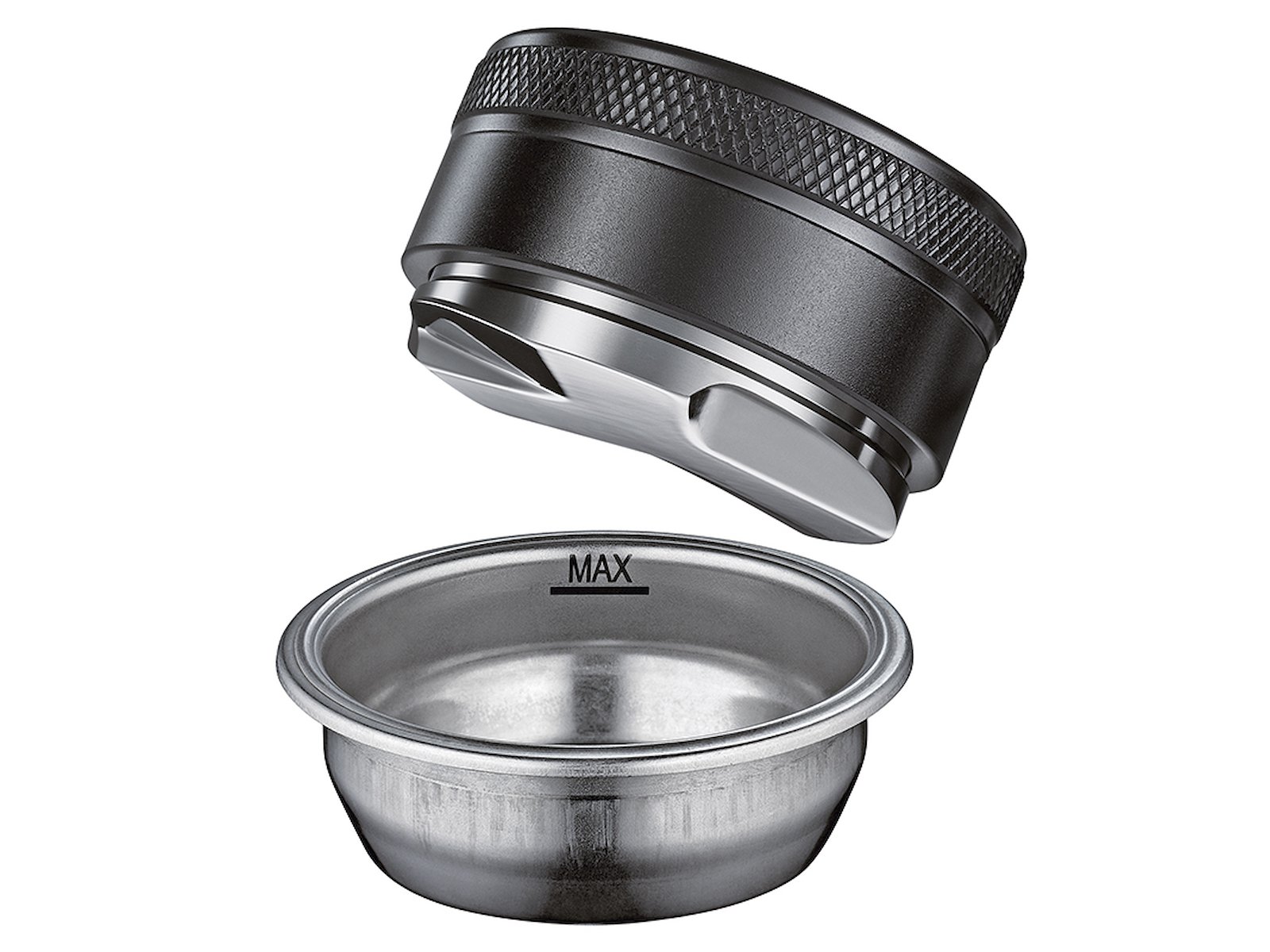 Tillverkad i anodiserad aluminium och rostfritt stål kombinerar detta kaffeverktyg funktionalitet med slitstyrka. Den svarta finishen ger ett elegant utseende, medan materialen säkerställer att redskapet håller för daglig användning i många år. Med en höjd på 35 mm och en diameter på 64 mm passar den perfekt i handen och är lätt att manövrera, även när du har bråttom.