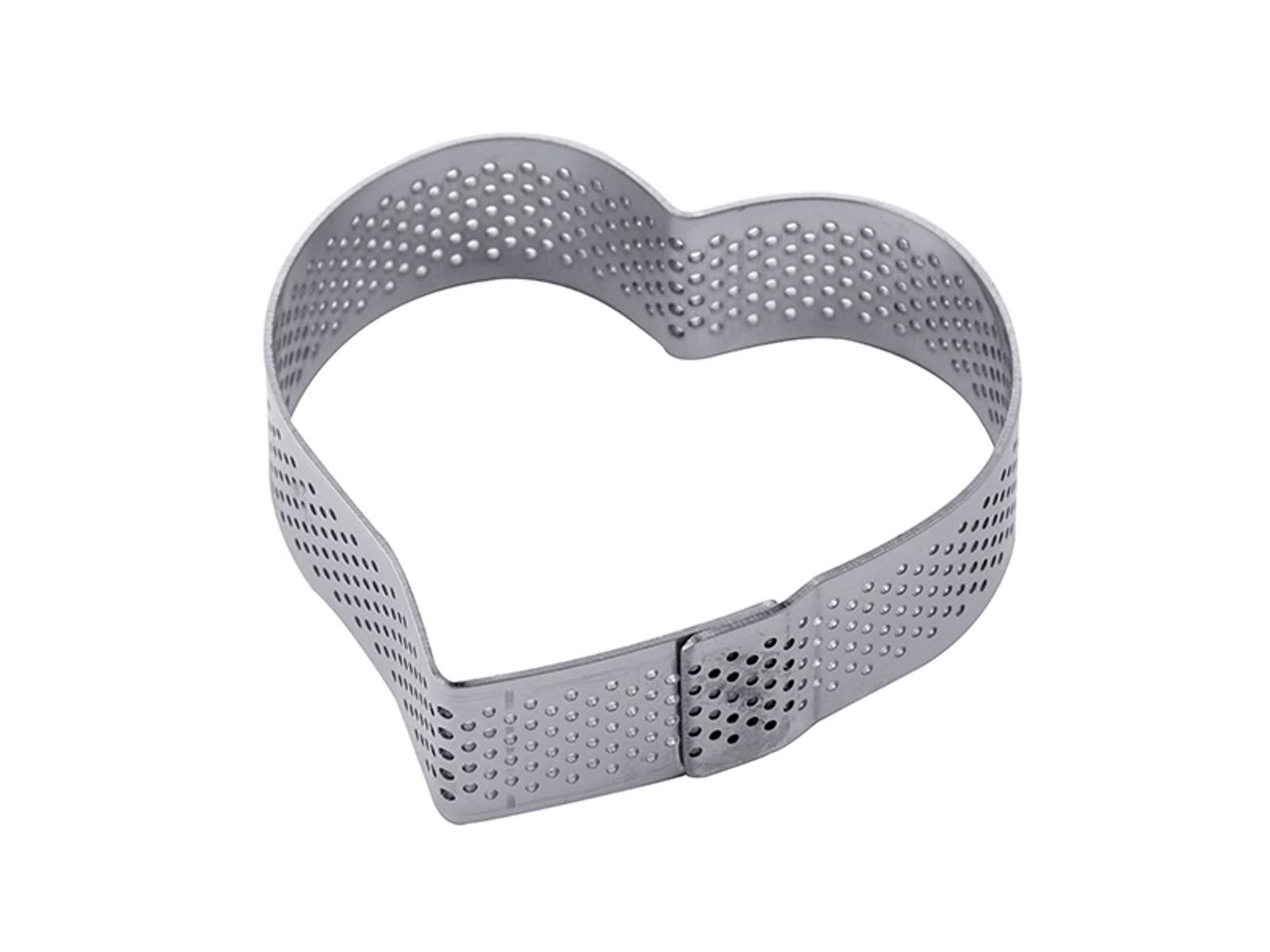 Bakringen mäter 74x62x20 mm, vilket gör den perfekt för portionsanpassade desserter. Den är tillverkad av livsmedelsgodkänt rostfritt stål, som både är hygieniskt och slitstarkt. Den särskilda hjärtformen ger ett elegant uttryck till dina skapelser, medan den perforerade konstruktionen säkerställer en jämn värmefördelning och därmed ett professionellt bakresultat.