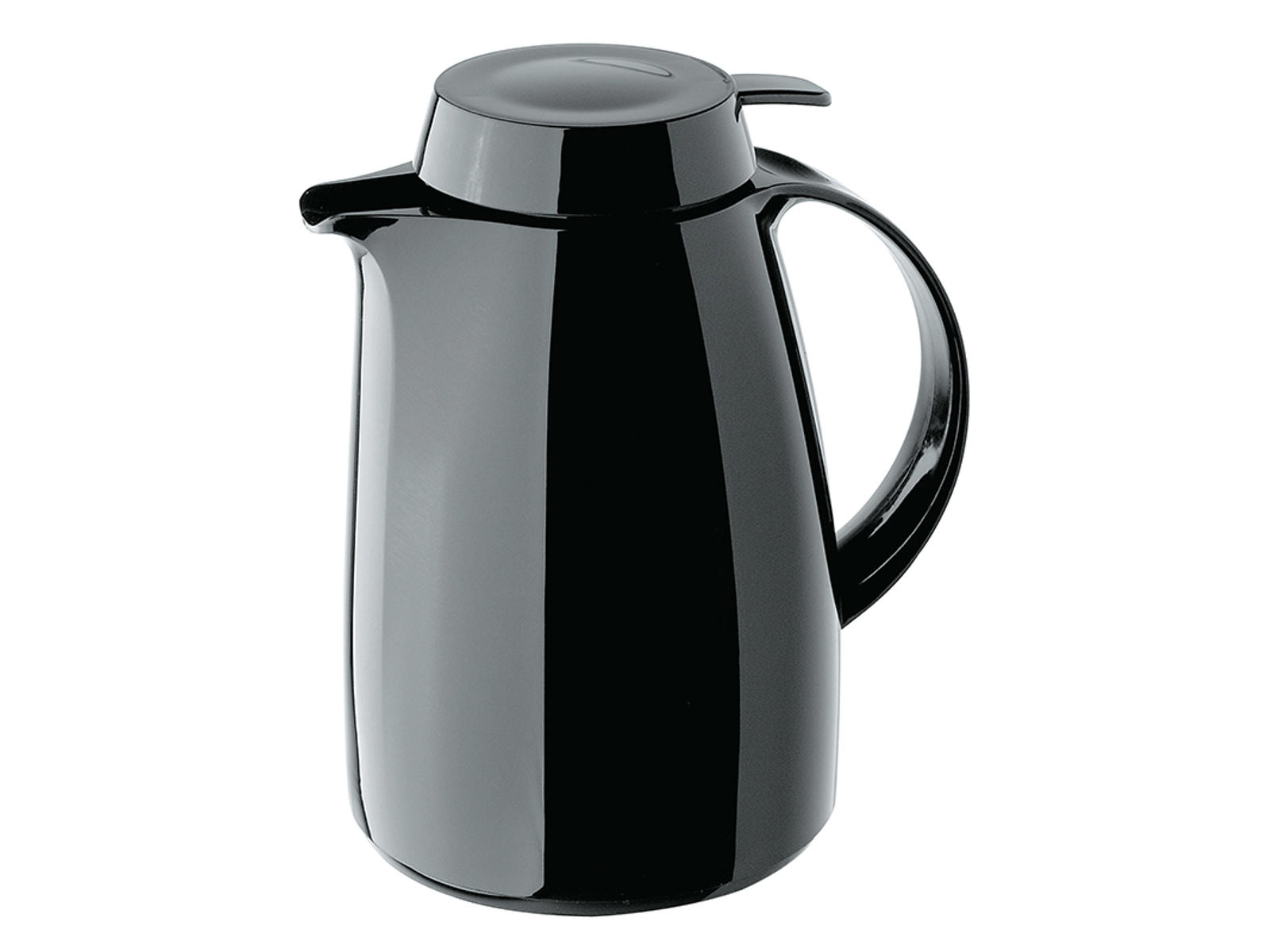 Denna Helios termoskanna på 1 liter kombinerar praktisk design med hög värmehållningsförmåga. Med sin hållbara plastyta i svart är kannan både stilren och funktionell. Den väger 660 gram och har en kapacitet på cirka 8 koppar, vilket gör den perfekt för både mindre sällskap och professionella serveringssituationer.