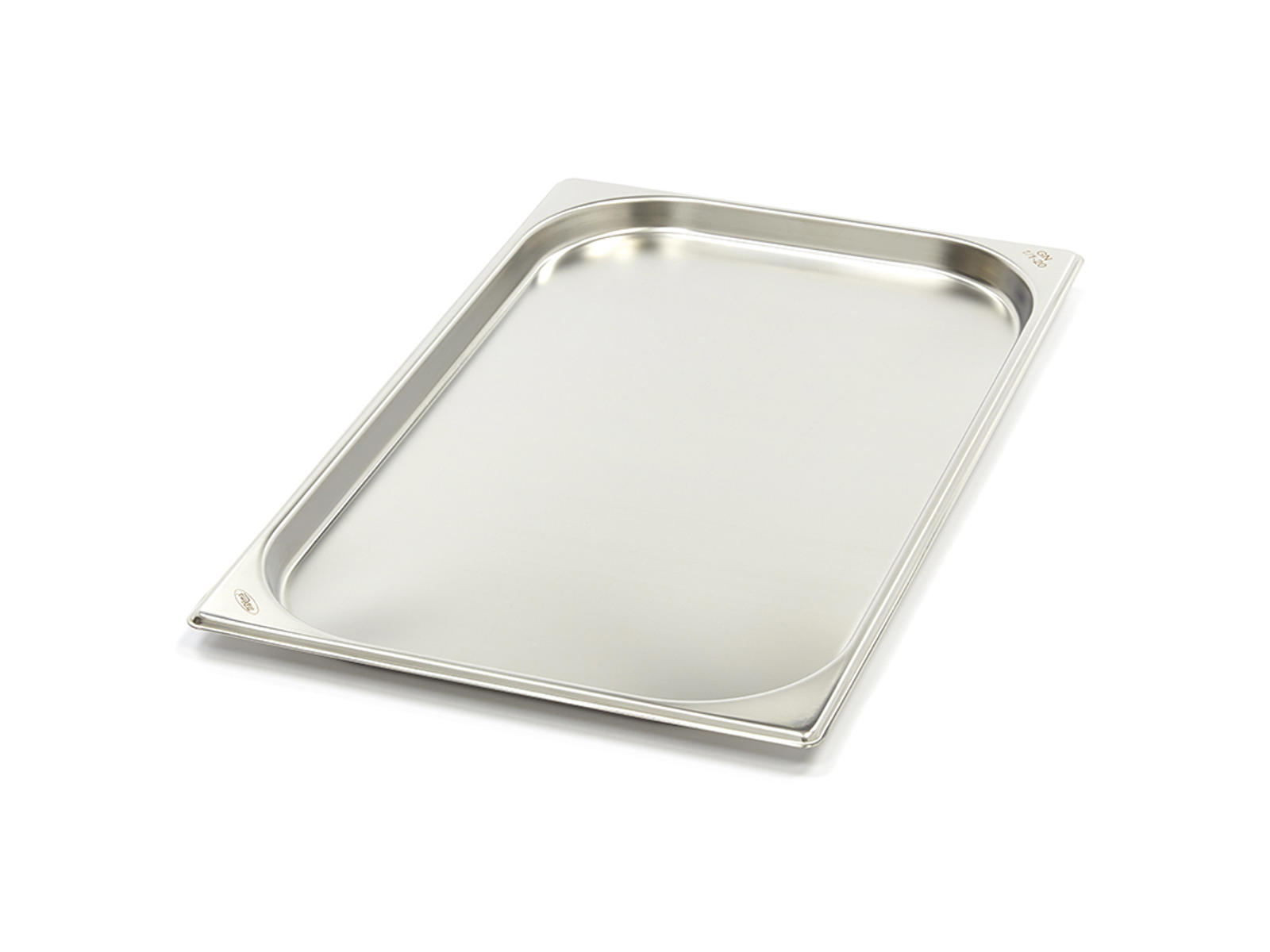 GN-kantinen har standardmåtten 530 x 325 mm med en höjd på 20 mm, vilket ger ett volym på 2,8 liter. Tillverkad i livsmedelsgodkänt rostfritt stål, som är motståndskraftigt mot korrosion och kan tåla upprepad användning i diskmaskin. Materialet är icke-poröst och absorberar inte lukter eller smak, vilket säkerställer hygienisk matförvaring.