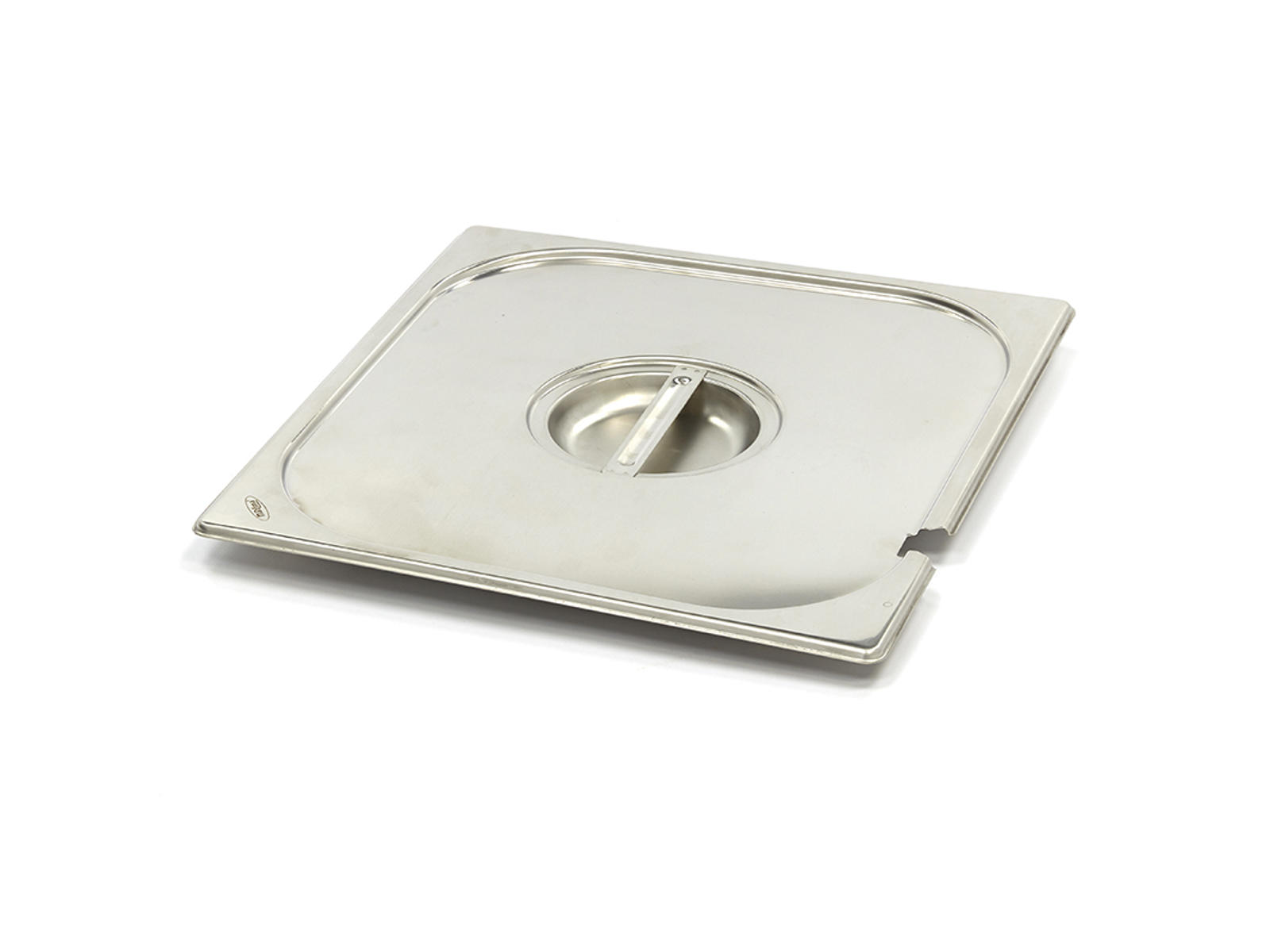 De vikta kanterna och rundade hörnen på detta kantinelock ökar både säkerheten och hållbarheten i vardagens hektiska arbetsflöden. Utskärningen för serveringsskedar möjliggör portionering av mat utan att ta bort hela locket, vilket är både hygieniskt och praktiskt vid servering. Den stapelbara konstruktionen sparar värdefull plats i köket, oavsett om locket ska förvaras i kylskåp, frysar eller på hyllor.