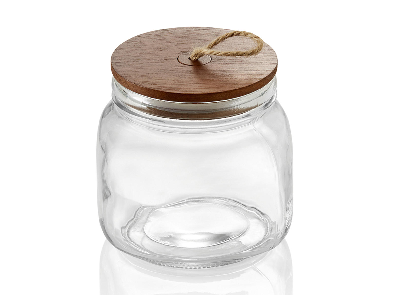 Förvaringsglas med glas - trälock - 0,65 l - 90x90x120 mm