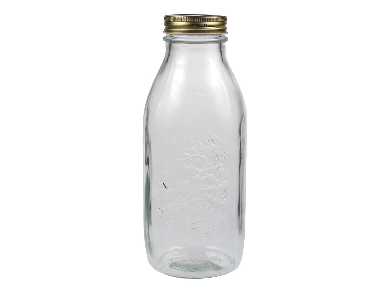 Bormioli Quattro syltetång i glas med ett rymligt volym på 1 liter ger dig optimal plats för dina hemlagade specialiteter. Den praktiska syltetången levereras komplett med lock, så du kan börja konservera säsongens råvaror direkt. Flaskan är tillverkad av hållbart glas som tål både värme och kyla.