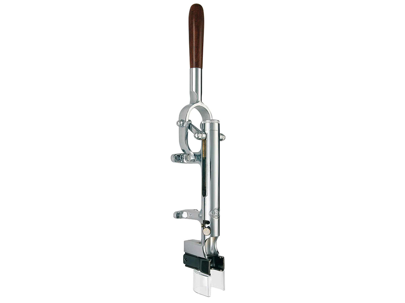 BOJs väggpropträcker med klassiskt trähandtag är en del av vinhistorien, patenterad redan 1959, och är fortfarande förstahandsvalet för professionell vinservering. Denna eleganta propträckare kombinerar tidlös design med överlägsen funktionalitet, tillverkad av rostfritt stål, zamak, ABS och mässing med en stilfull krombeläggning. Idealisk för restauranger, barer och passionerade vinentusiaster som söker en pålitlig lösning för snabb och effektiv flaskeöppning.