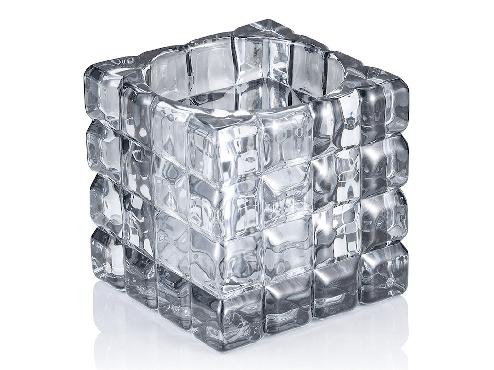 Ljuslykta - Glas - Rökgrå - 9x9x9cm