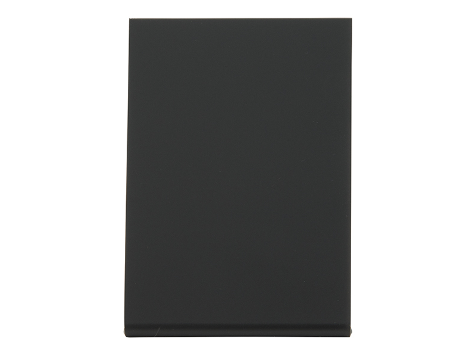 Denna L-formade bordtavla från Vermes kombinerar funktionalitet med en stilren design. Med sina kompakta mått på 11,5x7,5x4,5 cm är tavlan tillverkad av hållbar svart akryl med en matt framsida och en blank baksida, vilket ger ett elegant uttryck. Tavlan är perfekt för att presentera menyer, bordsnummer, priser eller informativa meddelanden i restauranger, butiker eller vid privata evenemang.