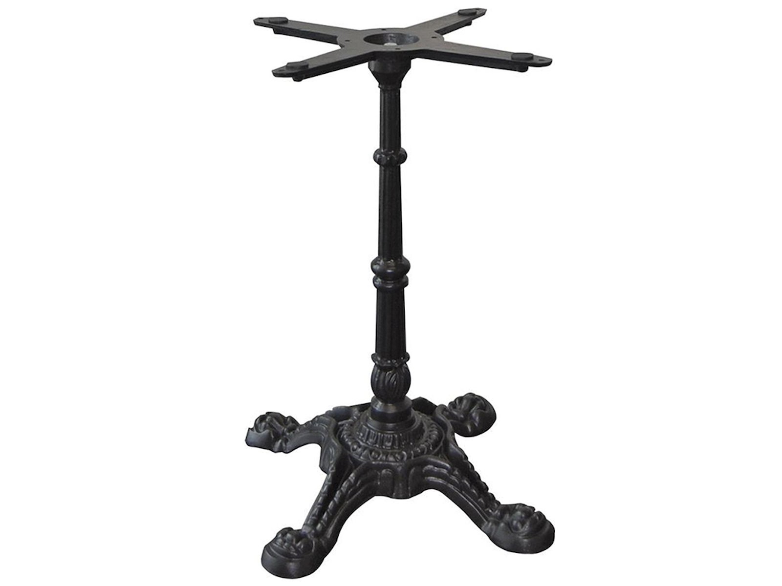 Africa 4 underredet i massivt svartlackat gjutjärn kombinerar klassisk rokokoinspirerad design med modern funktionalitet. Med sin vikt på 20,5 kg och karakteristiska utskärningar skapar detta underrede ett stabilt fundament för cafébord, restaurangmöbler och loungeområden, både inomhus och utomhus.