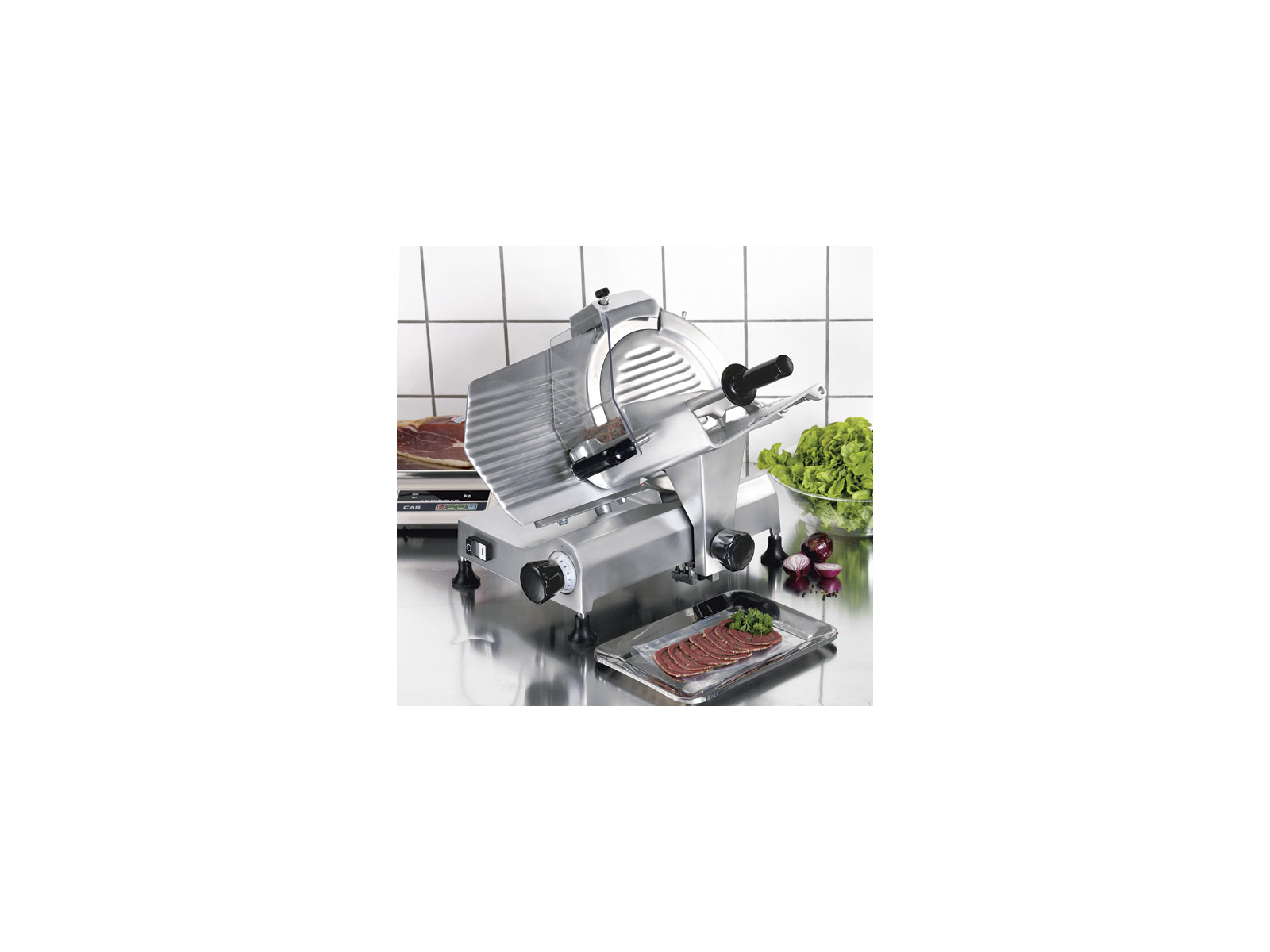 Den stora 300 mm kniven gör det möjligt att skära även större ämnen i perfekta, jämna skivor. Detta ger inte bara en vackrare presentation av dina produkter, utan minskar också svinn och säkerställer konsekvent kvalitet i varje servering. Aluminiumkonstruktionen ger maskinen den nödvändiga stabiliteten under drift, samtidigt som den håller vikten på en hanterbar nivå för en maskin i denna klass.