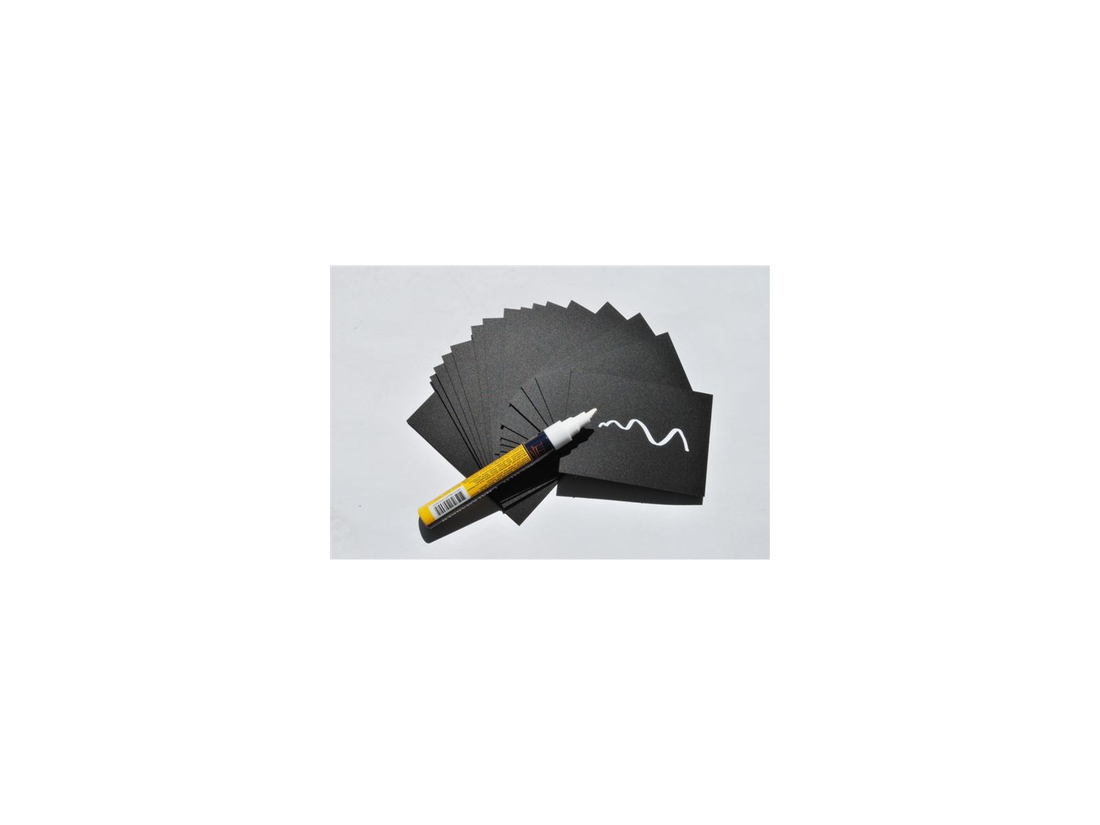 Prisskilt - Dubbelsided - Svart - A7 - 20 st - 1 st vit kritmarker - 105x74x1mm - 200g