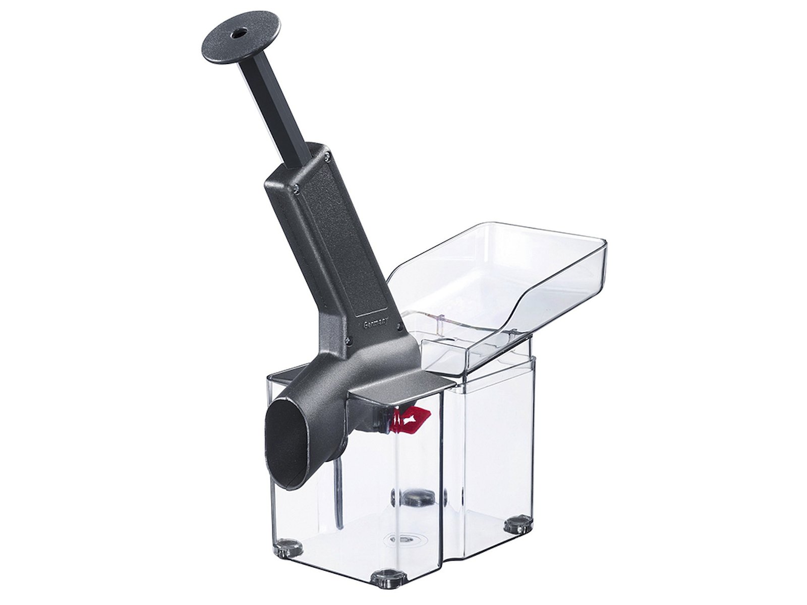 Westmark Black Edition körsbärsstensborttagare kombinerar funktionalitet och design i ett robust köksredskap. Med sin snedställda påfyllningstratt, precisa utstötningsmekanism och praktiska insamlingsbehållare gör den arbetet med körsbär till en enkel process. Stensborttagaren är tillverkad av kvalitetsmaterial som aluminium, rostfritt stål och SAN-plast.
