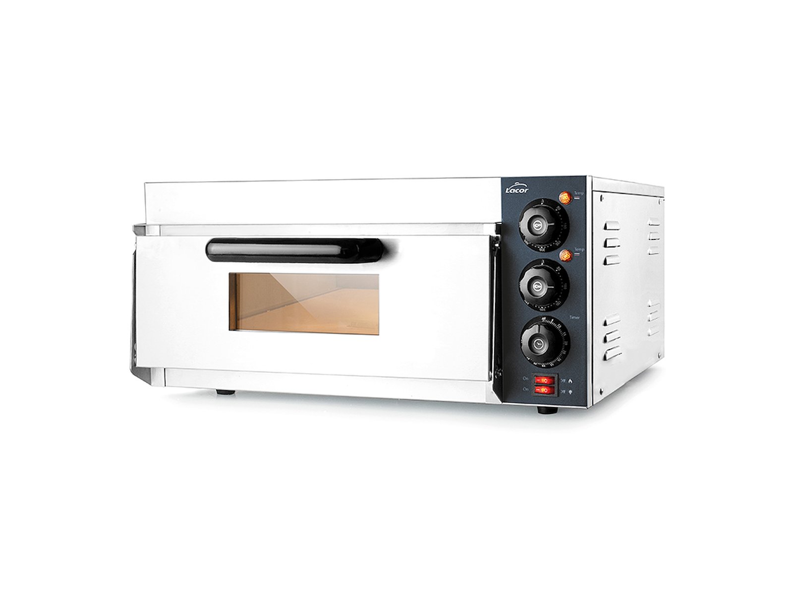 Med två separata ugnar kan du tillaga två pizzor samtidigt, vilket fördubblar din produktionskapacitet. Detta gör att du kan möta fler beställningar på kortare tid och minska väntetiden för dina kunder. Temperaturregleringen från 0-300°C ger dig exakt kontroll över bakprocessen, så att du kan anpassa temperaturen för olika pizzatyper och recept.