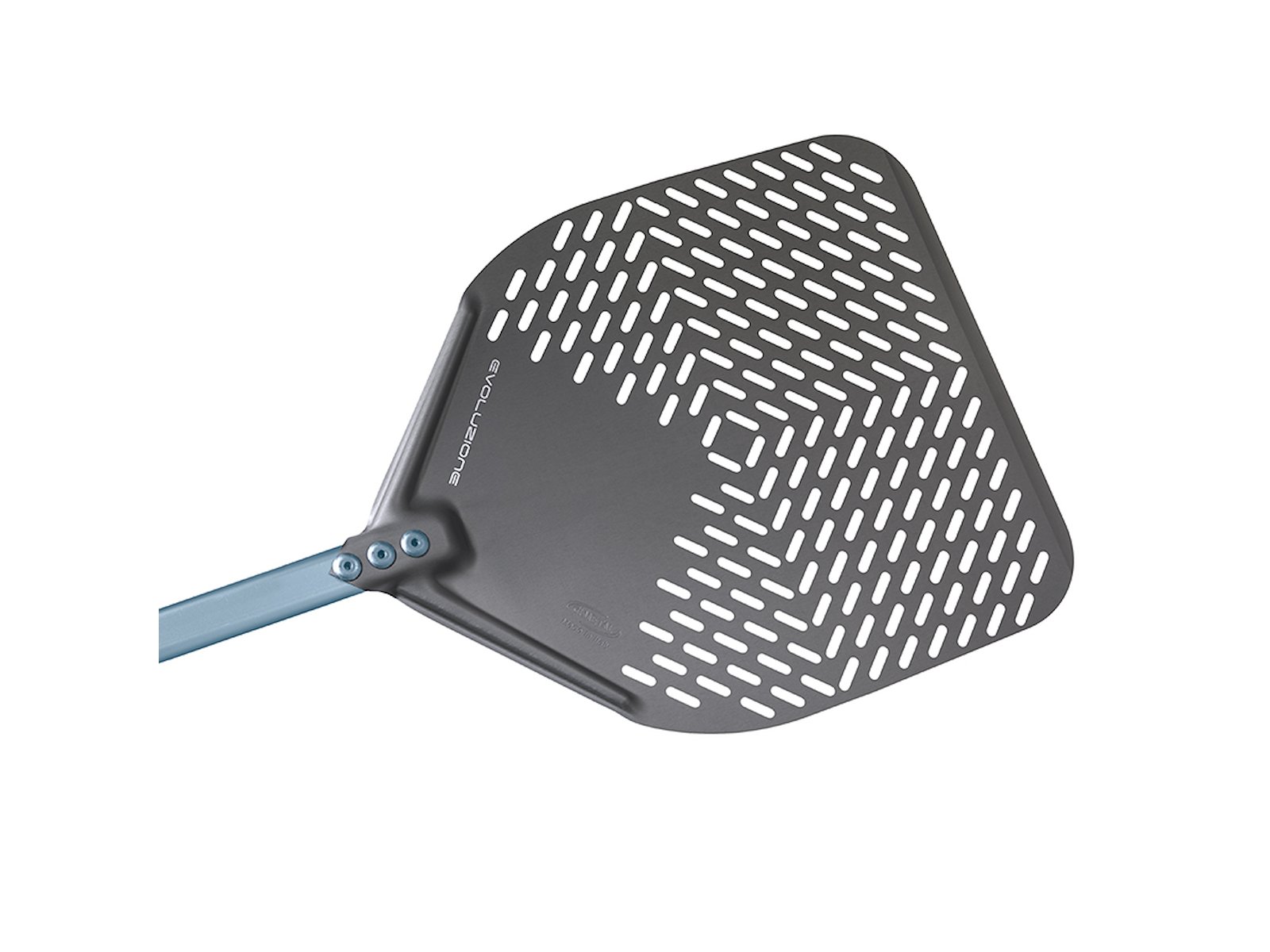 Pizzaspaden mäter 33x33 cm i bladet med perforerad yta för reducerad friktion. Det 60 cm långa handtaget ger bra räckvidd till djupa ugnar. Evoluzione-serien är känd för sina professionella köksredskap som kombinerar funktionalitet med hållbarhet. Spaden säljs som enstaka stycke och är redo för användning i professionella köksmiljöer.