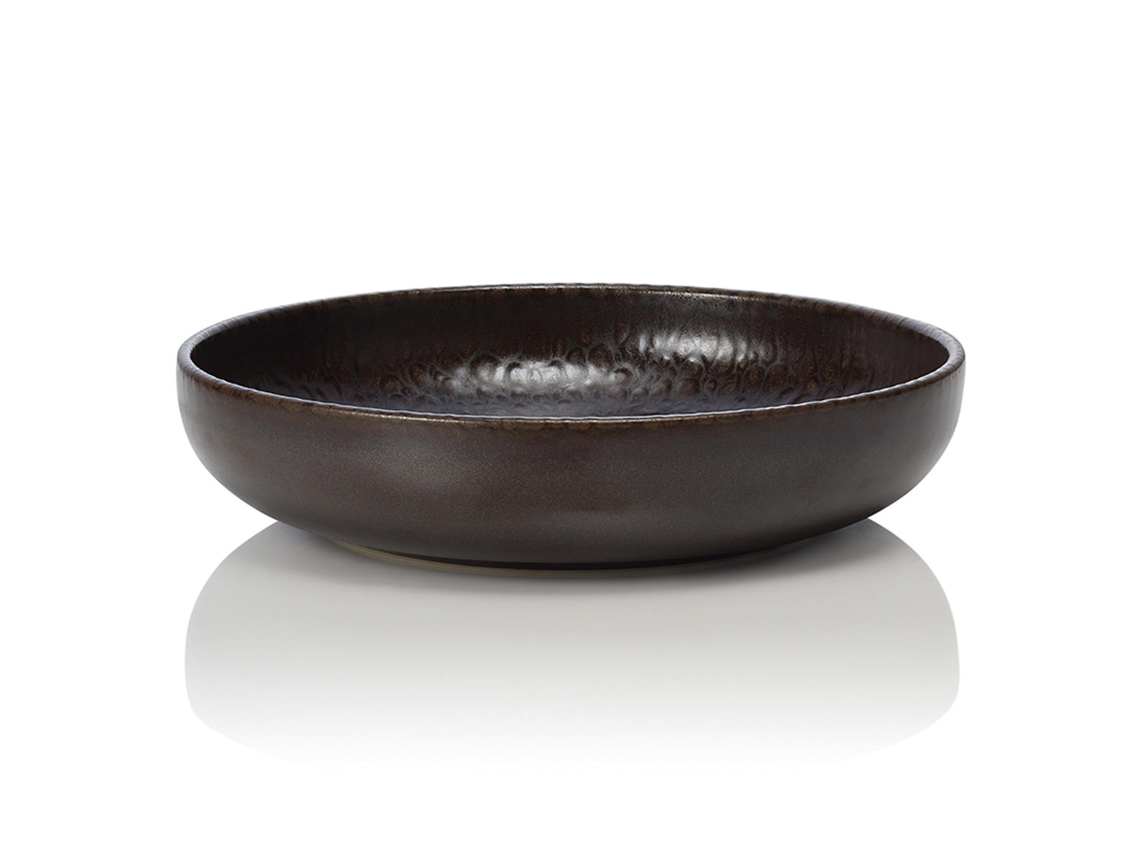 One Metallic Brown tallriken är tillverkad av kvalitetskeramik som bränts vid 1.170°C. Den mörkbruna glasyrens metalliska skimmer ger en levande och varierad yta. Små oregelbundenheter i färg och textur gör varje bit unik och tillför en rå elegans med modern kant. Den taktila, nästan vulkaniska ytan skapar en särskild sensorisk upplevelse när tallriken används. Observera att repor från bestick kan förekomma vid vanlig användning.