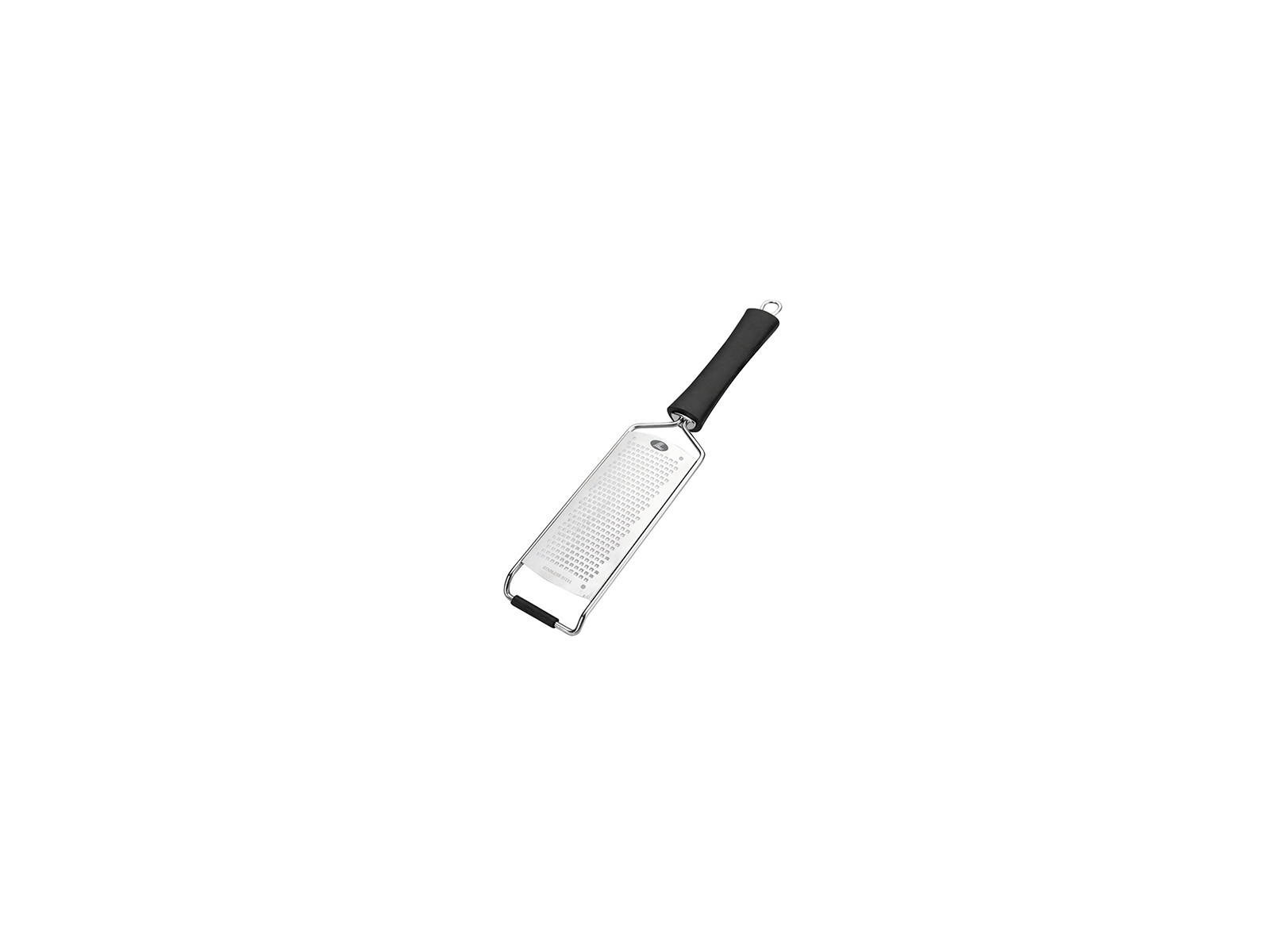 Rivjärnet har en längd på 235 mm och väger 136 gram, vilket gör det lätt att hantera och praktiskt att förvara. Det är tillverkat av kvalitets rostfritt stål med en svart finish som både är estetiskt tilltalande och praktisk. Den extra fina rivytan är särskilt lämplig för delikata ingredienser, där en fin konsistens är avgörande för det slutgiltiga resultatet.