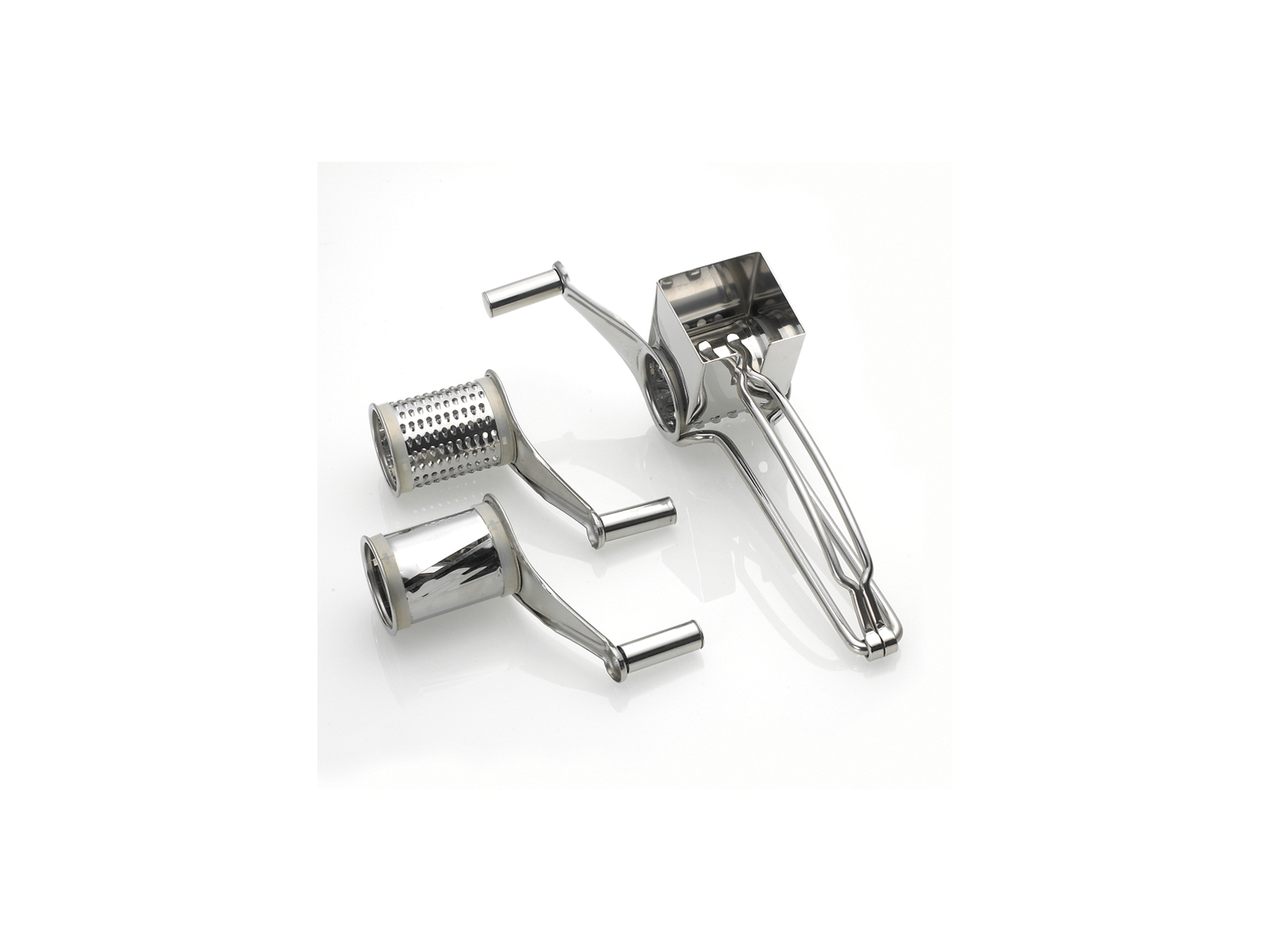 Rivmaskinen från Louis Tellier utmärker sig med sin genomtänkta funktionalitet. De tre medföljande trummorna ger dig möjlighet att variera konsistens och skärmetod beroende på behov. Rostfritt stål säkerställer inte bara hållbarhet utan också livsmedelssäkerhet, eftersom materialet inte avger smak eller reagerar med sura livsmedel. Det ergonomiska handtaget ger ett bra grepp, så att du kan arbeta säkert och effektivt, även när du river hårda ostar eller fasta grönsaker.