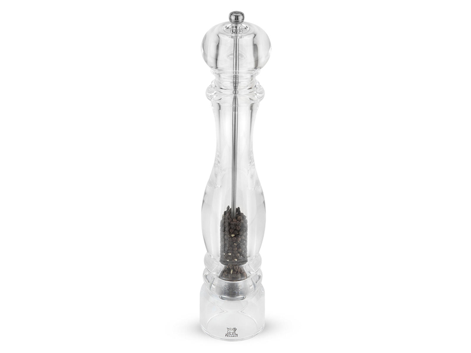 Peugeot Nancy pepparkvarn i akryl förenar klassisk design med förstklassig funktionalitet. Med en imponerande höjd på 38 cm och en stilren, transparent akrylkropp ger denna kvarn både ett elegant uttryck och praktisk användning. Den transparenta akrylen ger en tydlig översikt över mängden pepparkorn, så att du alltid vet när det är dags för påfyllning.