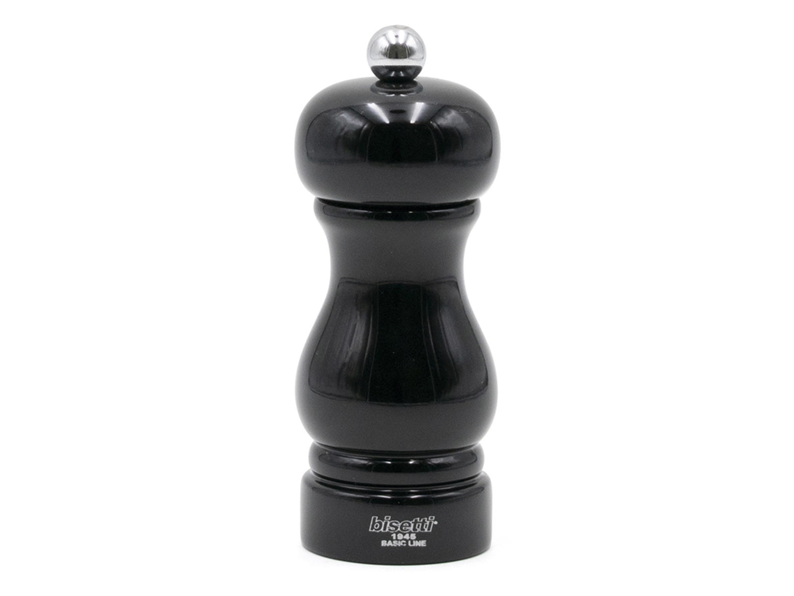 Denna svarta lackerade salt kvarn från Bisetti kombinerar stilren design med praktisk funktionalitet i köket. Med en höjd på 13 cm ligger den perfekt i handen och gör det möjligt för dig att tillsätta den exakta mängden salt till dina rätter. Den svarta lackfinishen ger kvarnen ett elegant uttryck som passar in i varje kök.
