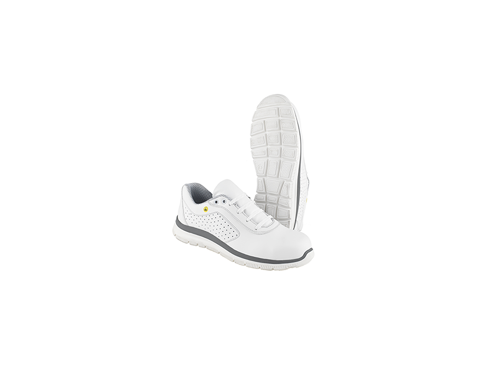Modellen är utrustad med snörningsstängning, vilket ger dig möjlighet att justera passformen exakt efter din fot. Den vita färgen uppfyller hygienkrav inom många branscher, medan den slitstarka konstruktionen i konstläder och mikrofiber säkerställer lång livslängd. Den breda passformen (vidd 12) ger extra komfort för användare med bredare fötter eller för dem som föredrar mer utrymme i skorna.