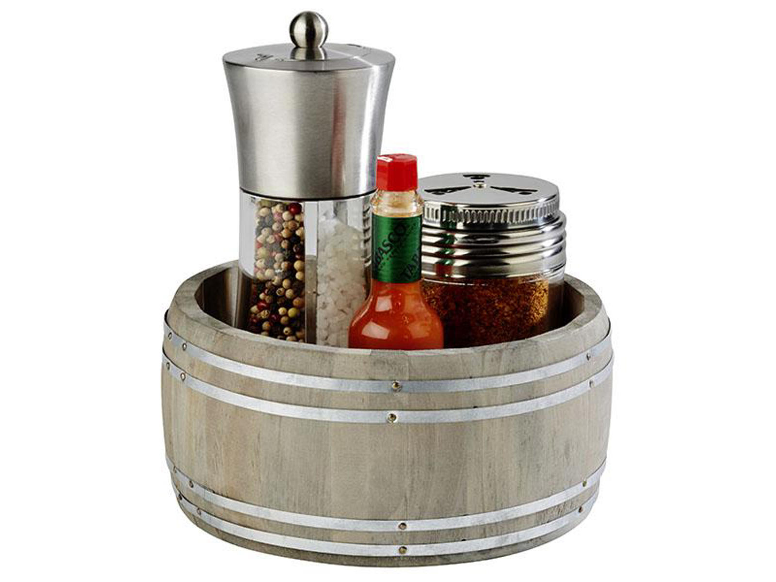 Trämaterialet ger fatet en varm, autentisk utstrålning som passar perfekt in i både rustika och moderna serveringsmiljöer. Den kompakta storleken gör den lätt att placera på bord med begränsat utrymme, samtidigt som den är tillräckligt rymlig för att fungera som en effektiv serveringslösning. Fatets design är inspirerad av traditionella vintunnor, vilket tillför ett nostalgiskt inslag till din bordsdukning.