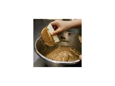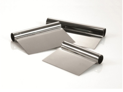 Det är här degskrapor i olika format kommer in i bilden. När det gäller bakning så är degskrapor lika elementära som köksknivar är inom matlagning. En degskrapa med skaft är som bekant oumbärlig när man ska skrapa ut deg eller smet ur en bunke. Det är också ett sant nöje att använda en degskrapa utan skaft, t.ex. av metall, till att skära ut sin deg i bullar i samma storlek. Dessutom är denna degskrapa lysande till att skrapa upp deg från bakbordet - och till att samla degen under bakningen. Metallskrapor är mycket hygieniska och håller länge, medan skrapor av plast är praktiska eftersom du inte behöver vara så försiktig under användningen då de inte repar bakbordet lika lätt.
