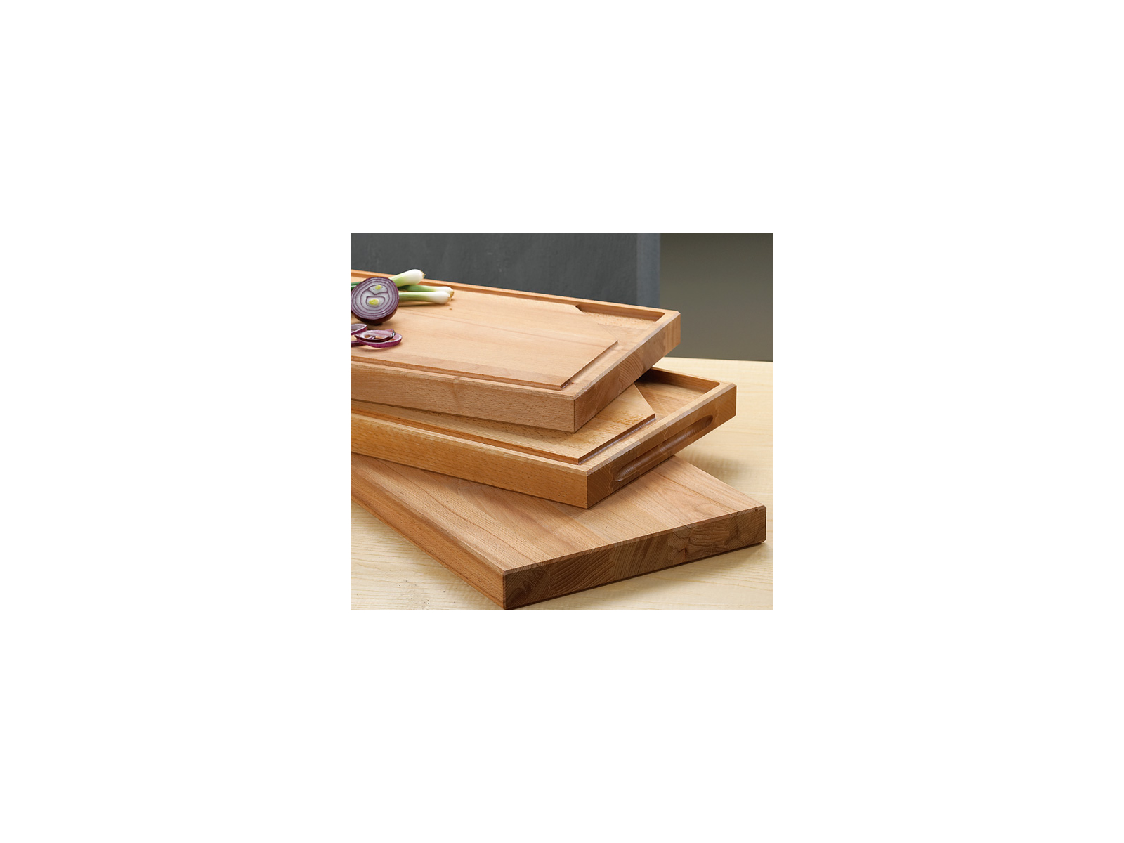 Denna robusta skärbräda i bok, mått 75x40x4 cm, ger dig en rymlig arbetsyta i köket. Den praktiska saftgrottan och rännan samlar upp vätska från kött och saftiga råvaror, så att ditt köksbord hålls torrt och rent under matlagningen.