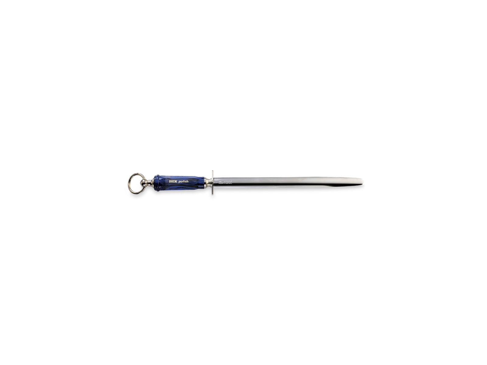 En strykstång tar inte bort material från kniven, utan rättar istället till den mikroskopiska eggen som böjs vid normal användning. Genom att regelbundet använda denna strykstång efter varje användning av kniven kan du förlänga tiden mellan faktiska slipningar avsevärt. Den polerade ytan på denna F. Dick strykstång är särskilt lämpad för att ge kniven en slät och exakt egg, vilket är avgörande för finare skärarbete.
