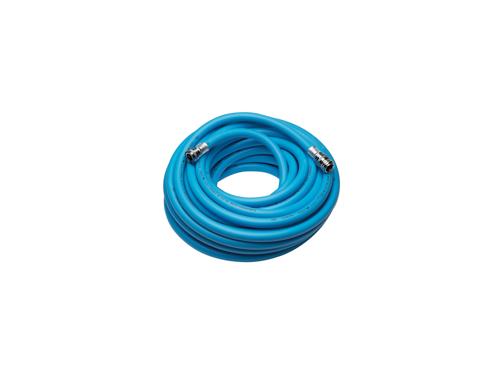 Med en vikt på 5 kg är denna slang tillverkad av hållbara material som klarar av daglig professionell användning. PVC-materialet i kombination med mässingskopplingar säkerställer lång livslängd även under krävande förhållanden. Den blå färgen gör slangen lätt att identifiera i arbetsmiljön, och den 20 meter långa konstruktionen ger dig frihet att nå även avlägsna områden utan att behöva flytta vattenkällan.