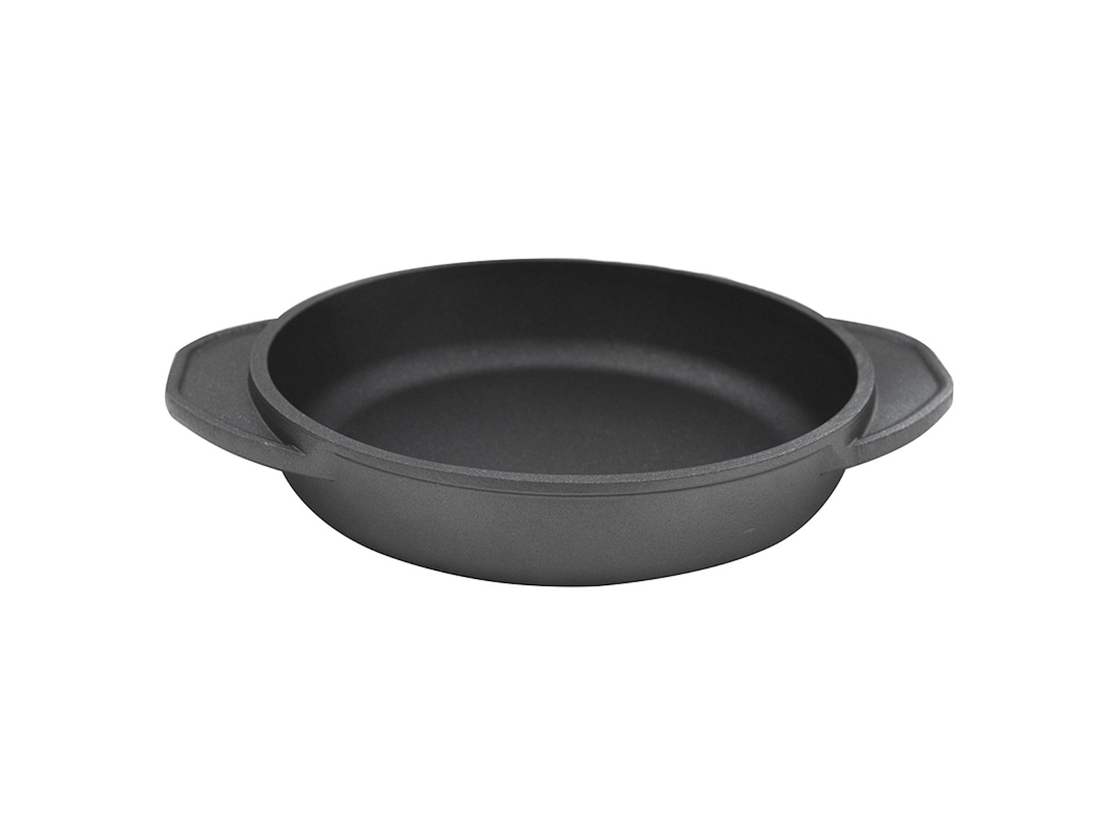 Mibrasa SC20 ugnspannan har en diameter på 200 mm och är tillverkad av gjuten aluminium med svart non-stick beläggning. Den runda formen säkerställer gott om plats för olika typer av mat, och den ugnssäkra egenskapen ger flexibilitet i tillagningen. Pannan är designad med fokus på professionell användning, men fungerar lika bra i hemmaköket.