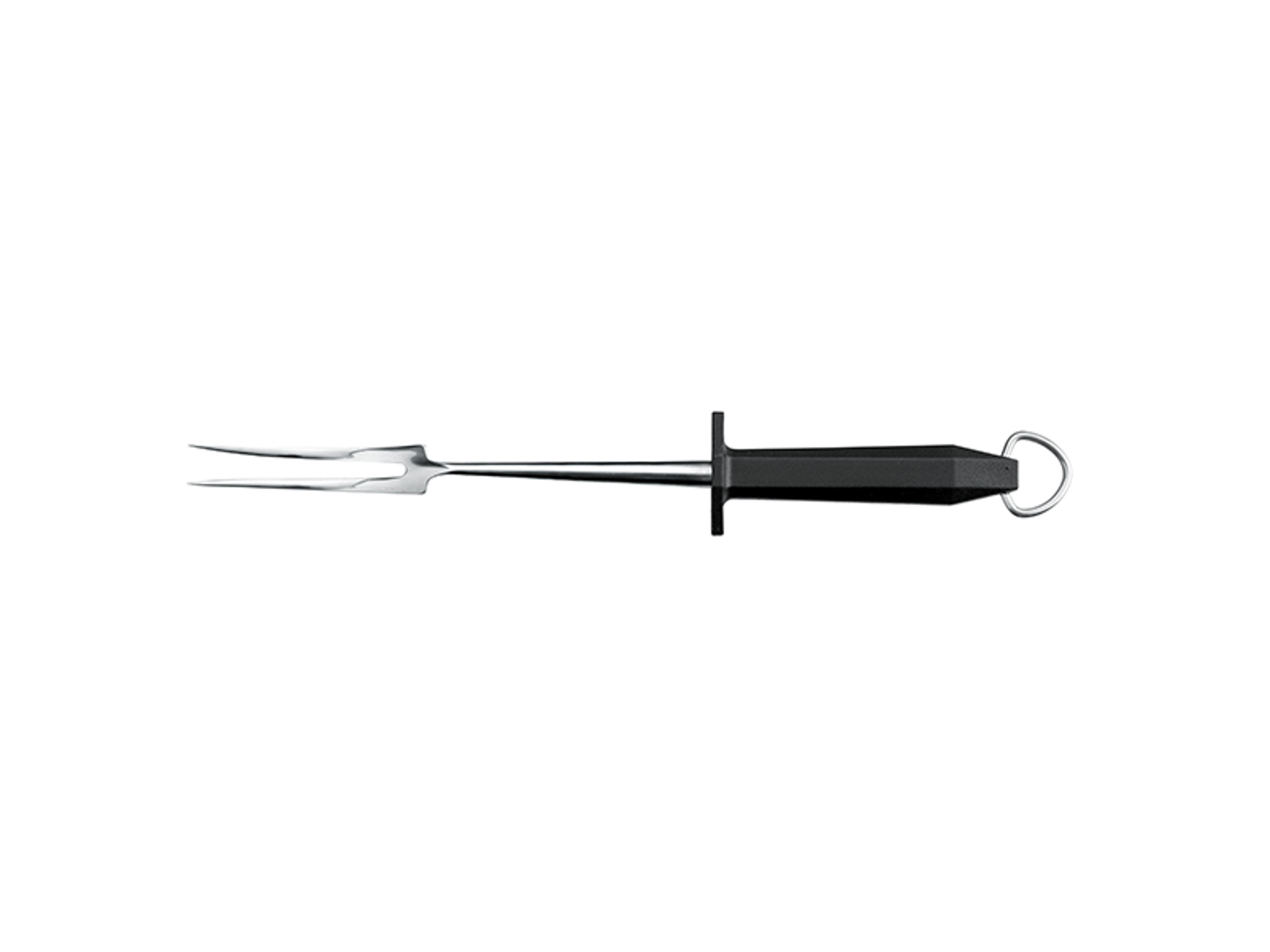 - Robust stekgaffel med tänder av plånstål för säker hantering av kött