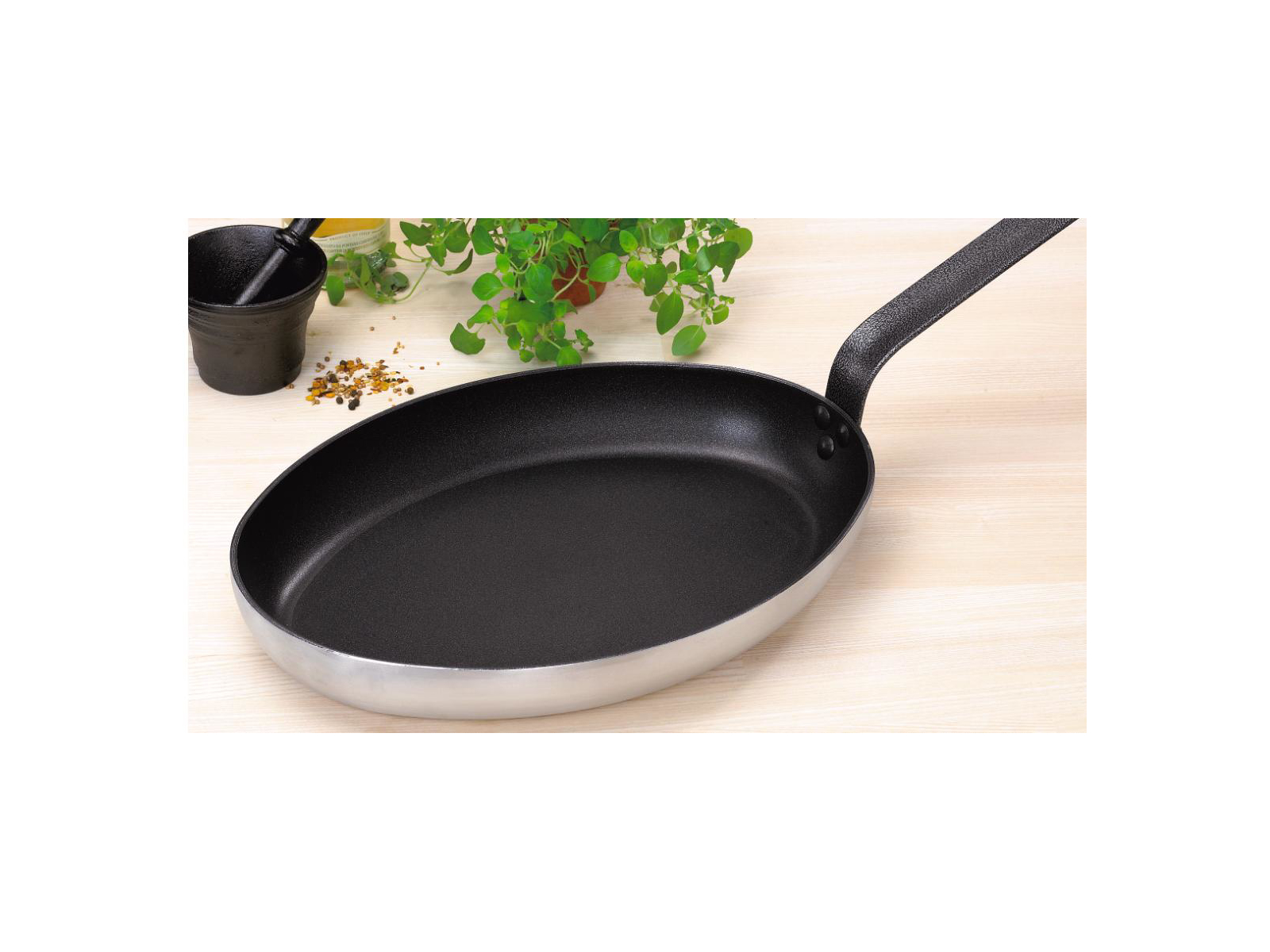 Med en invändig mått på 34x23,5 cm och en kapacitet på 3,9 liter är denna panna rymlig nog för hela fiskar eller flera portioner på en gång. Den 4-lagers non-stick beläggningen förhindrar att maten bränner fast och minskar behovet av fett vid tillagningen. Detta gör inte bara rengöringen enklare utan bidrar även till hälsosammare matlagning. Pannans ovala form är särskilt lämplig för fisk, men fungerar också utmärkt för andra rätter som kräver mer utrymme än en traditionell rund panna.