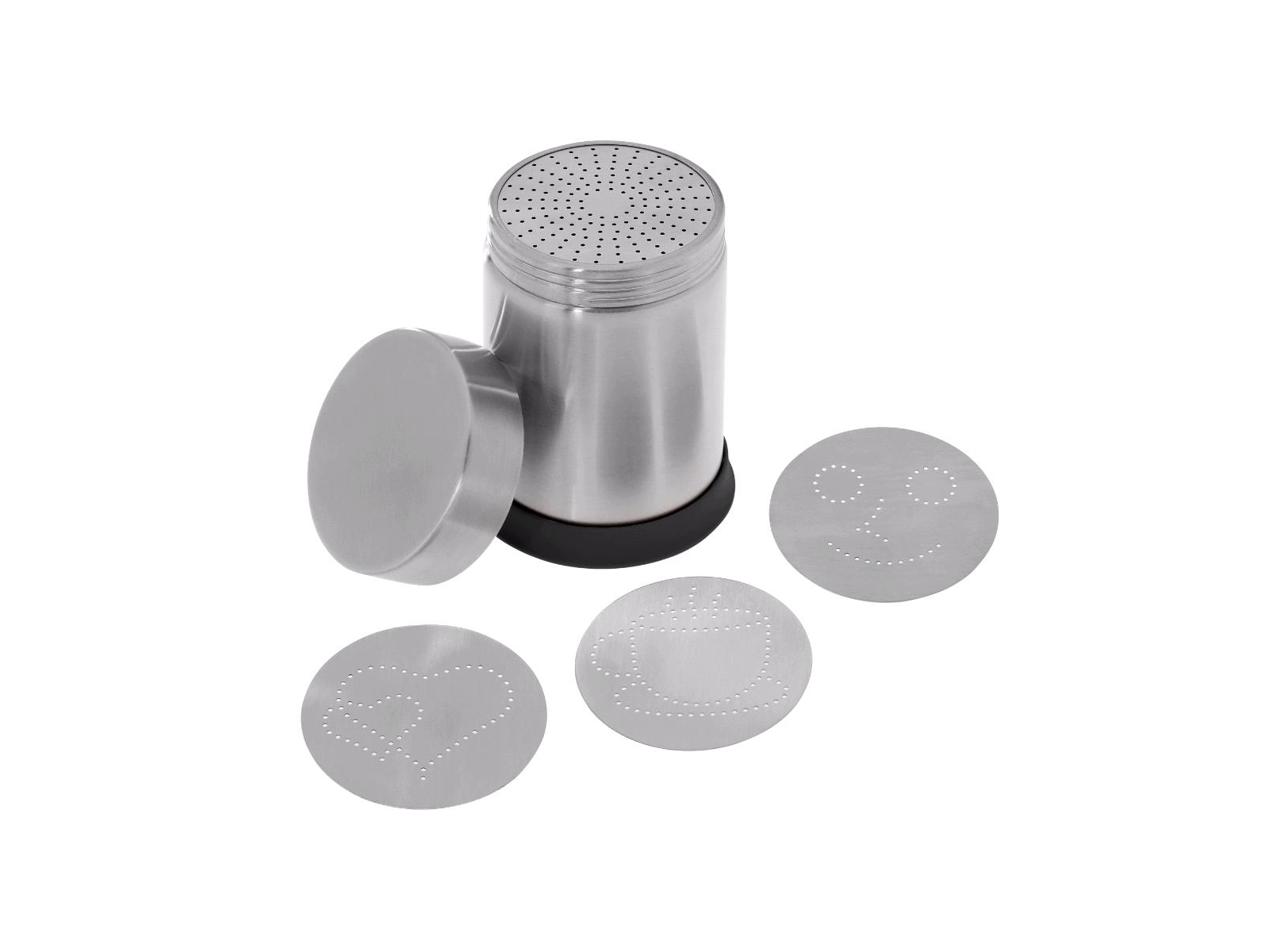 Idealisk för att dekorera specialkaffe, varm choklad, glassdesserter och tallrikar med florsocker, kakao eller andra fina pulver.