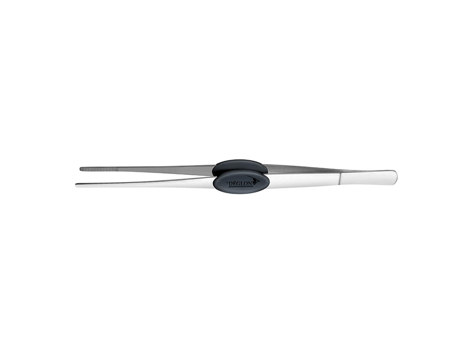 Déglon Class pincetten på 22 cm kombinerar professionell precision med ergonomisk design. Tillverkad av hållbart 18/8 stål och utrustad med integrerade polypropylenkuddar ger denna pincett både stabilitet och komfort under användning. Idealiskt för köksproffs och matentusiaster som värdesätter precision i sitt arbete.