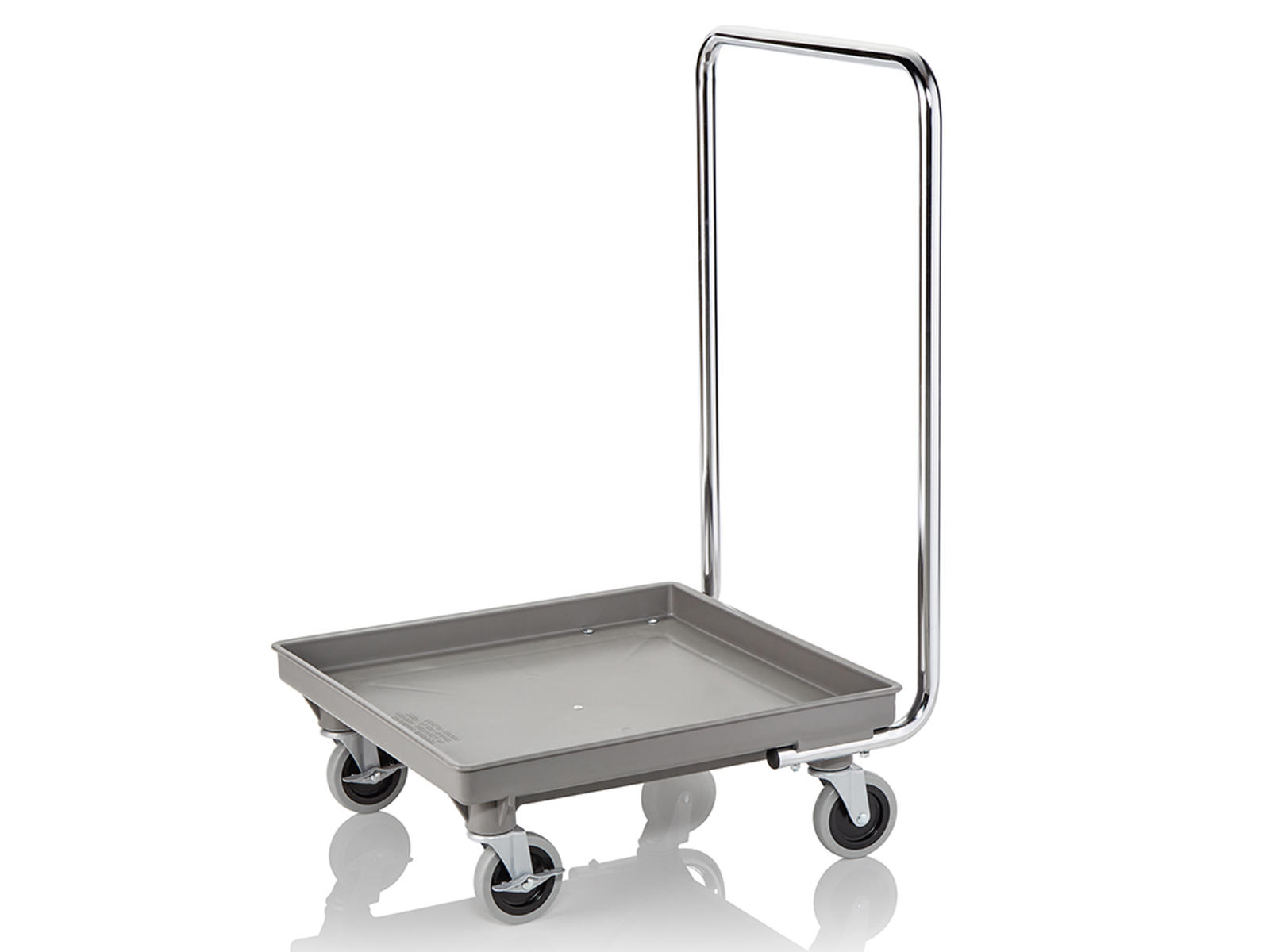 Det integrerade handtaget ger ett säkert grepp och god manövrerbarhet, även när vagnen är fullt lastad. Den genomtänkta konstruktionen minskar belastningen på personalen vid transport av tunga diskbackar, vilket minimerar risken för arbetsrelaterade skador och trötthet. Hjulens utformning gör att de rullar jämnt på olika underlag, vilket gör transporten mer kontrollerad och stabil.