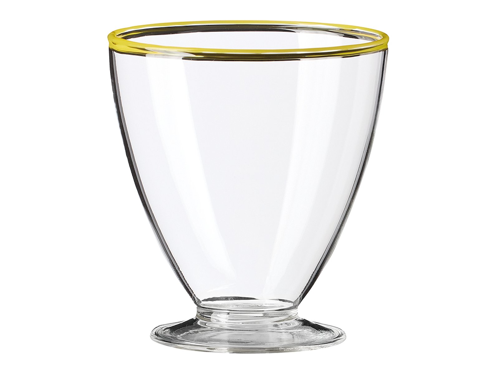 Detta 30 cl glas med fot är en del av Aidas Life in Colour Art-serie. Med en vikt på endast 90 gram är glaset lätt att hantera, men ändå tillräckligt robust för daglig användning. Materialet är borosilikatglas, som kombinerar elegans med hållbarhet. Den gula kanten ger glaset karaktär och gör det lätt att känna igen ditt eget glas vid bordet.