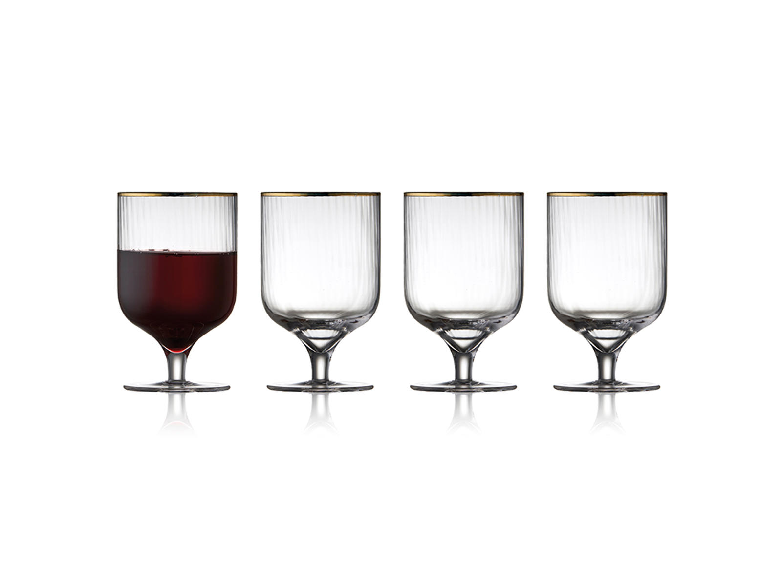 - Fyra eleganta vinglas med guldkant och räfflad design