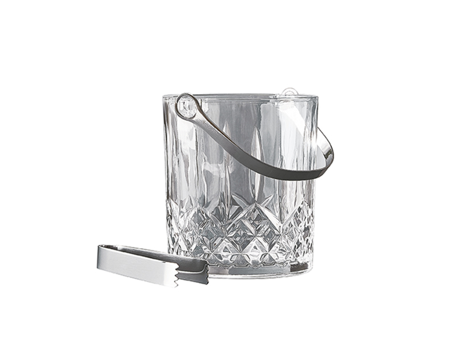 Det praktiska handtaget gör det enkelt att transportera isspanden från kök till bord utan att få kalla fingrar. Den medföljande tången säkerställer hygienisk servering, så att dina gäster slipper gräva i isen med fingrarna. Det fasetterade glasdesignen är inspirerad av dyr kristall, men kommer till ett vardagspris som gör lyx tillgänglig för alla. Glassets transparens ger ett vackert visuellt uttryck där isens kalla blå nyanser framträder.